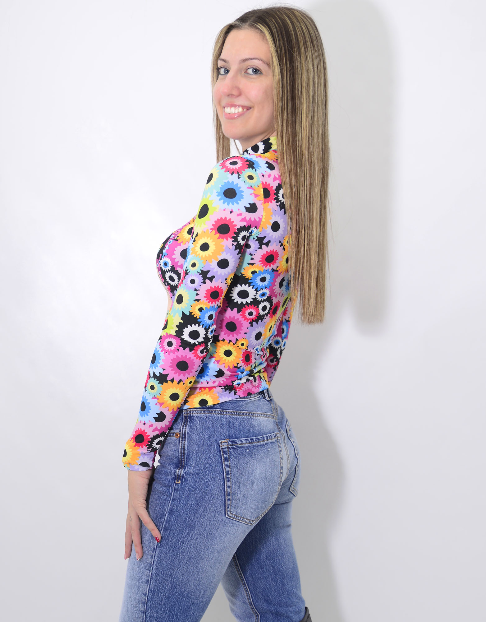Con un estampado lleno de color, amor, primavera…Combinable tanto con vaqueros, como faldas de cuero, etc..