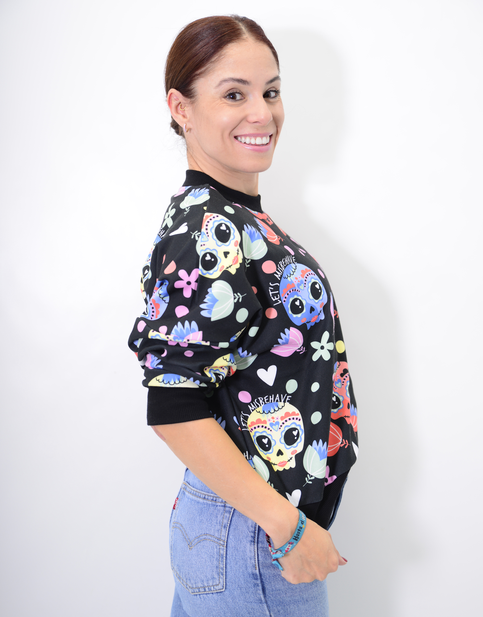 Sudadera de manga larga, con un estampado lleno de calaveras de colores!