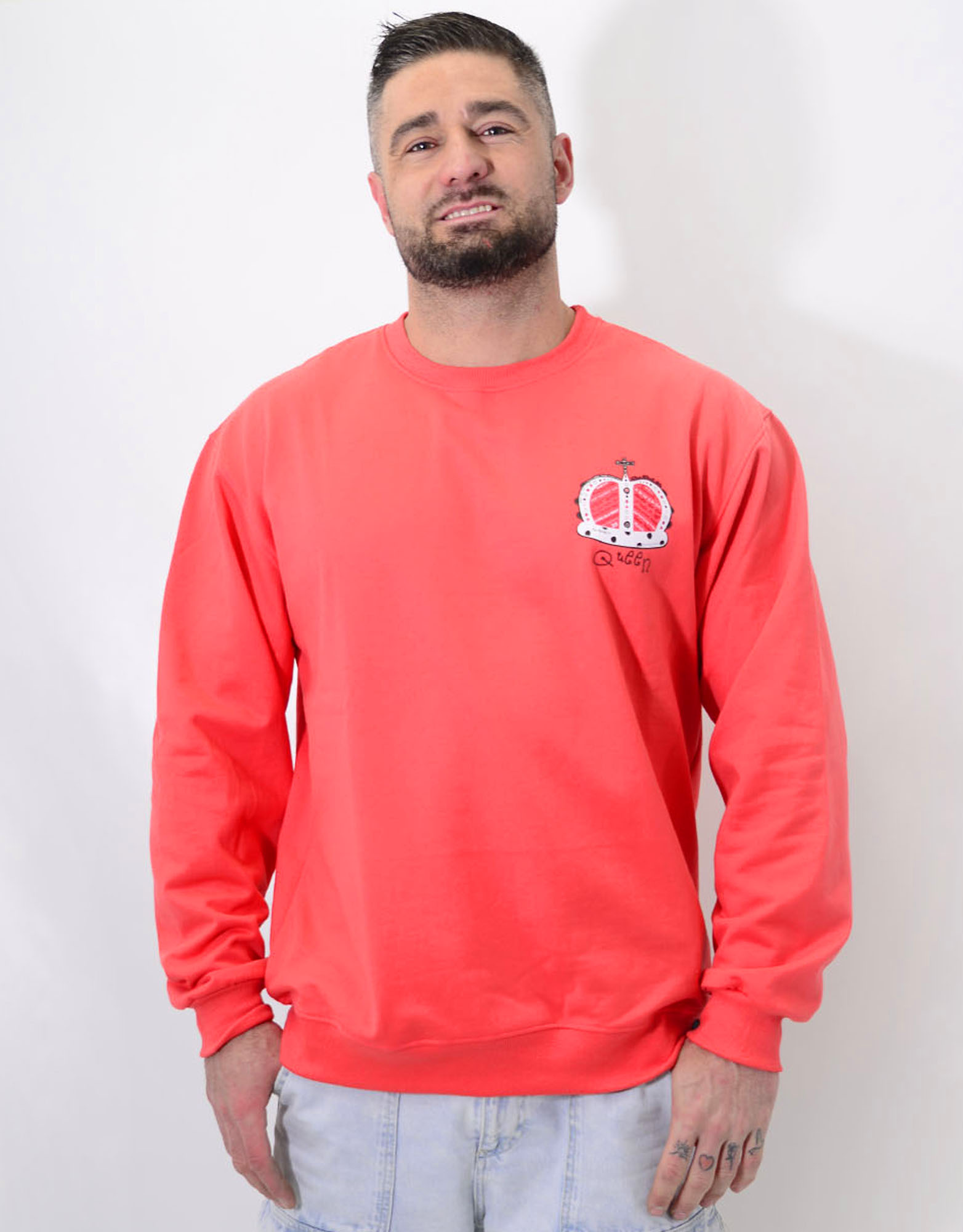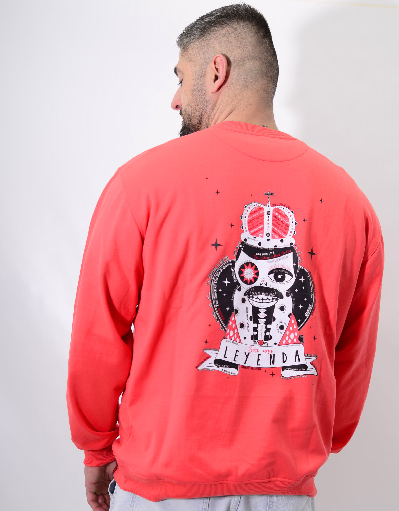 Es suave, estilo confort y muy cómoda!!Ilustración en espalda, de Queen, con todas sus canciones…es BRUTAL! y detalle de la corona en el pecho.