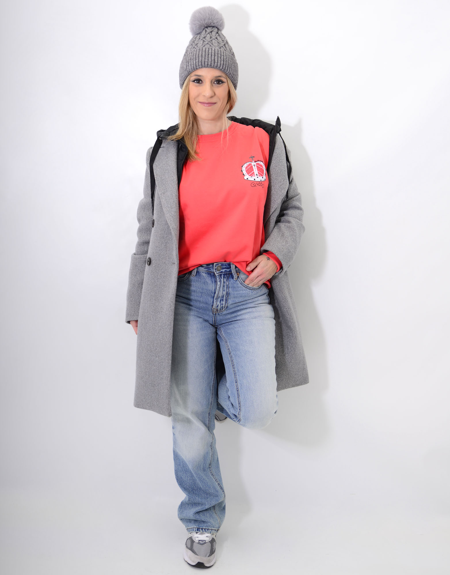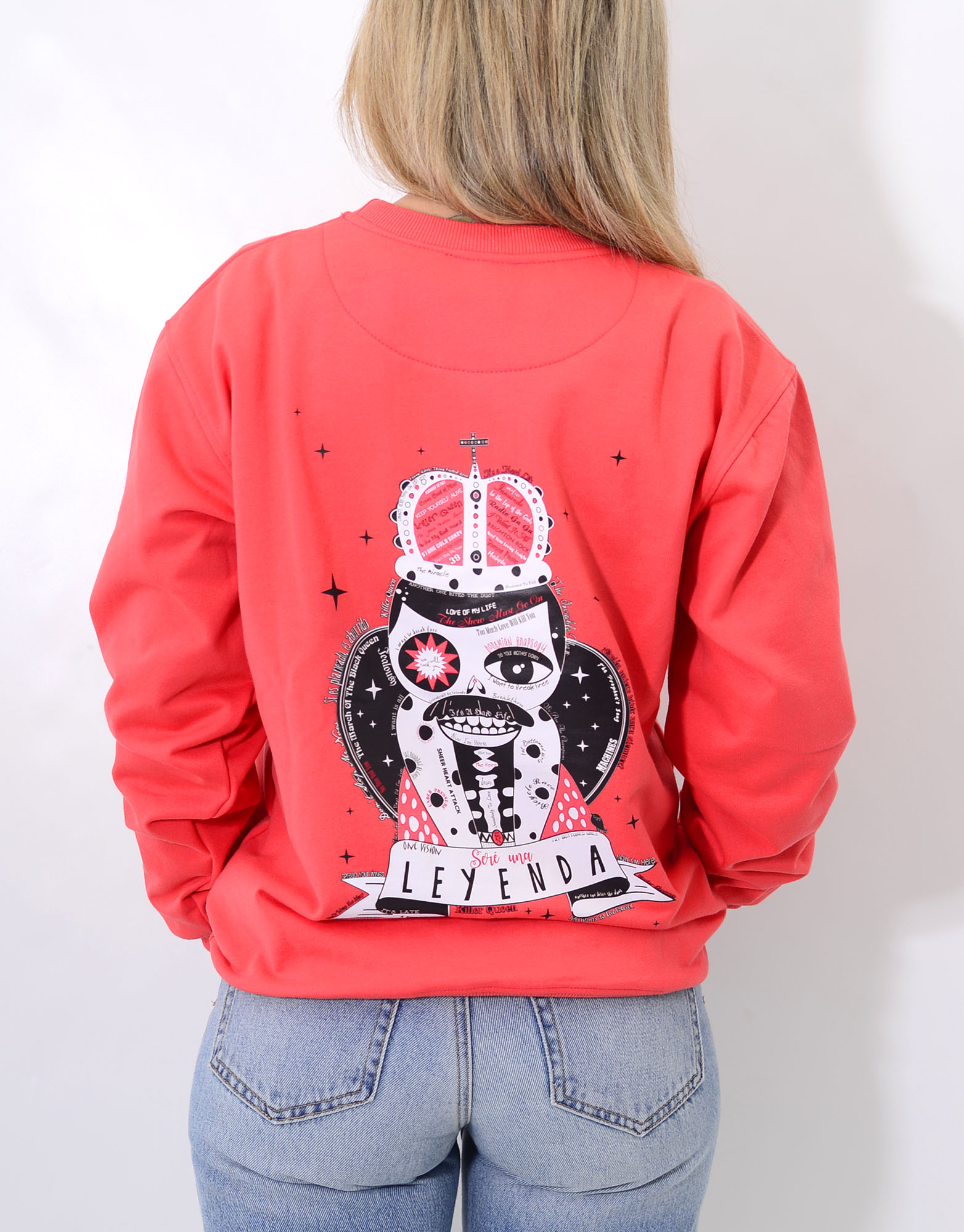 Sudadera unisex de manga larga y pelito por dentro. Con fondo rojo cereza muy bonito y favorecedor.