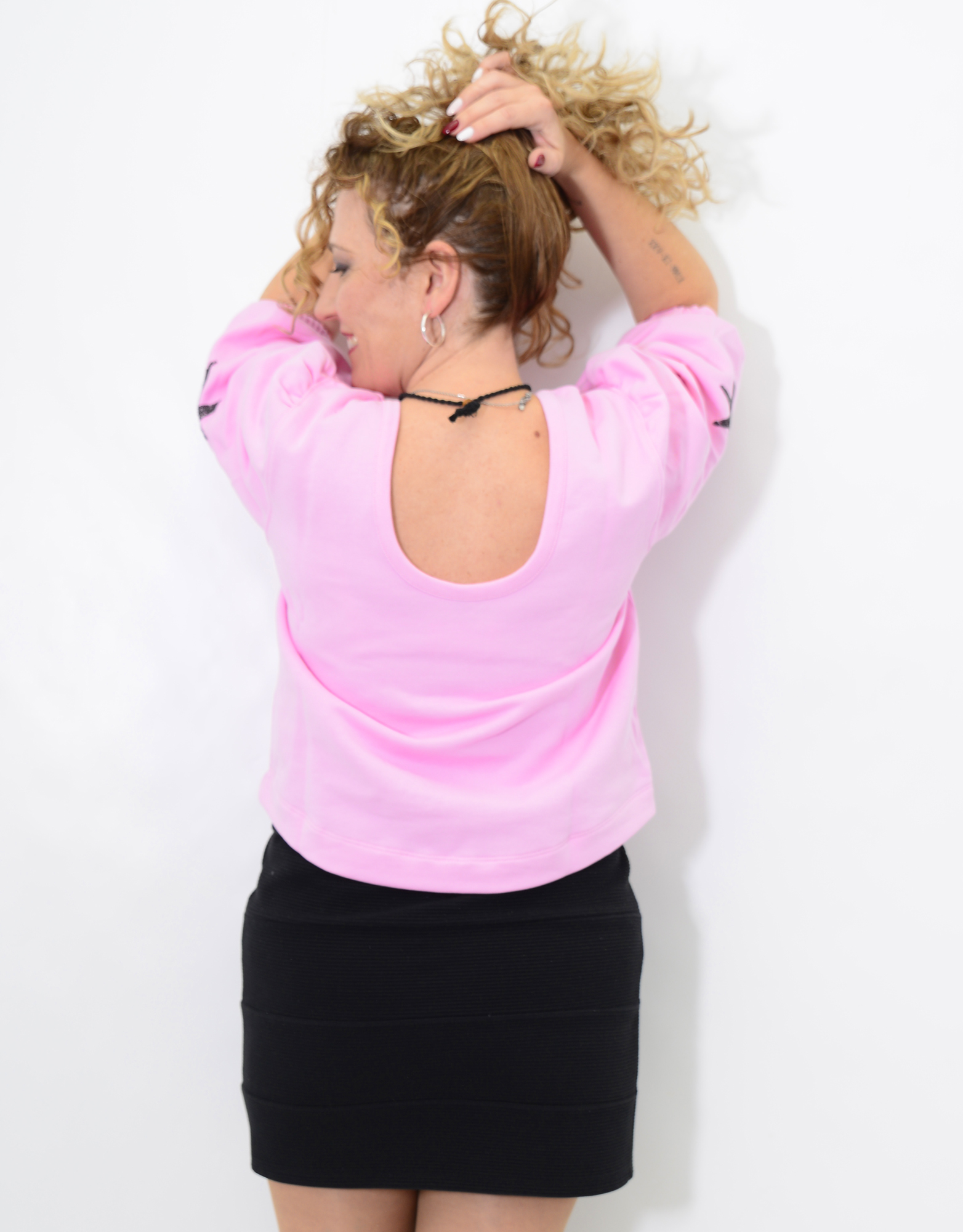 Detalle de coderas negras en lentejuelas con forma de estrellita!! Y…escotazo en la espalda!!! Queda súper bonito!